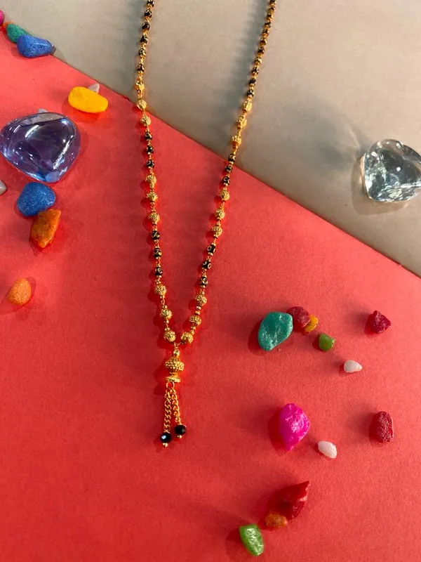 Everyday Glamour: Embrace the luxury of fine craftsmanship in your everyday wear. This micro gold-plated chain cum ball mala is designed to withstand daily activities while exuding timeless charm and allure, making it an essential part of your daily style.