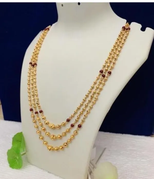 Elegant Red Pearls: The 3-Layer Chain is adorned with beautiful red pearls, adding a touch of elegance and sophistication to the overall design.